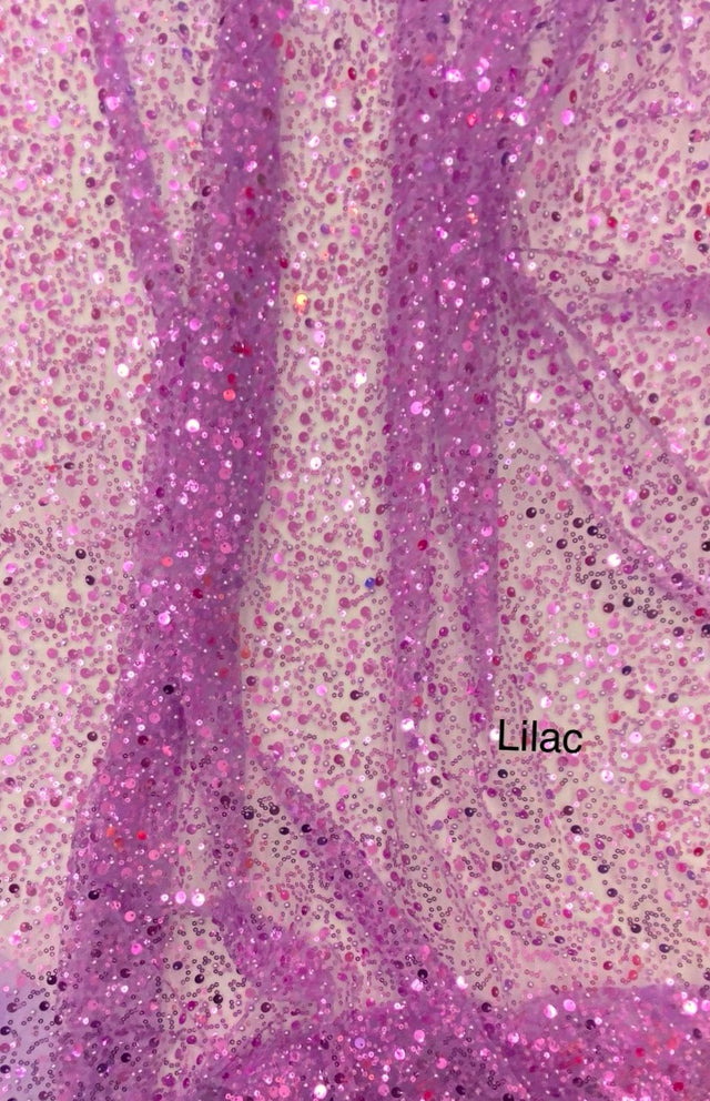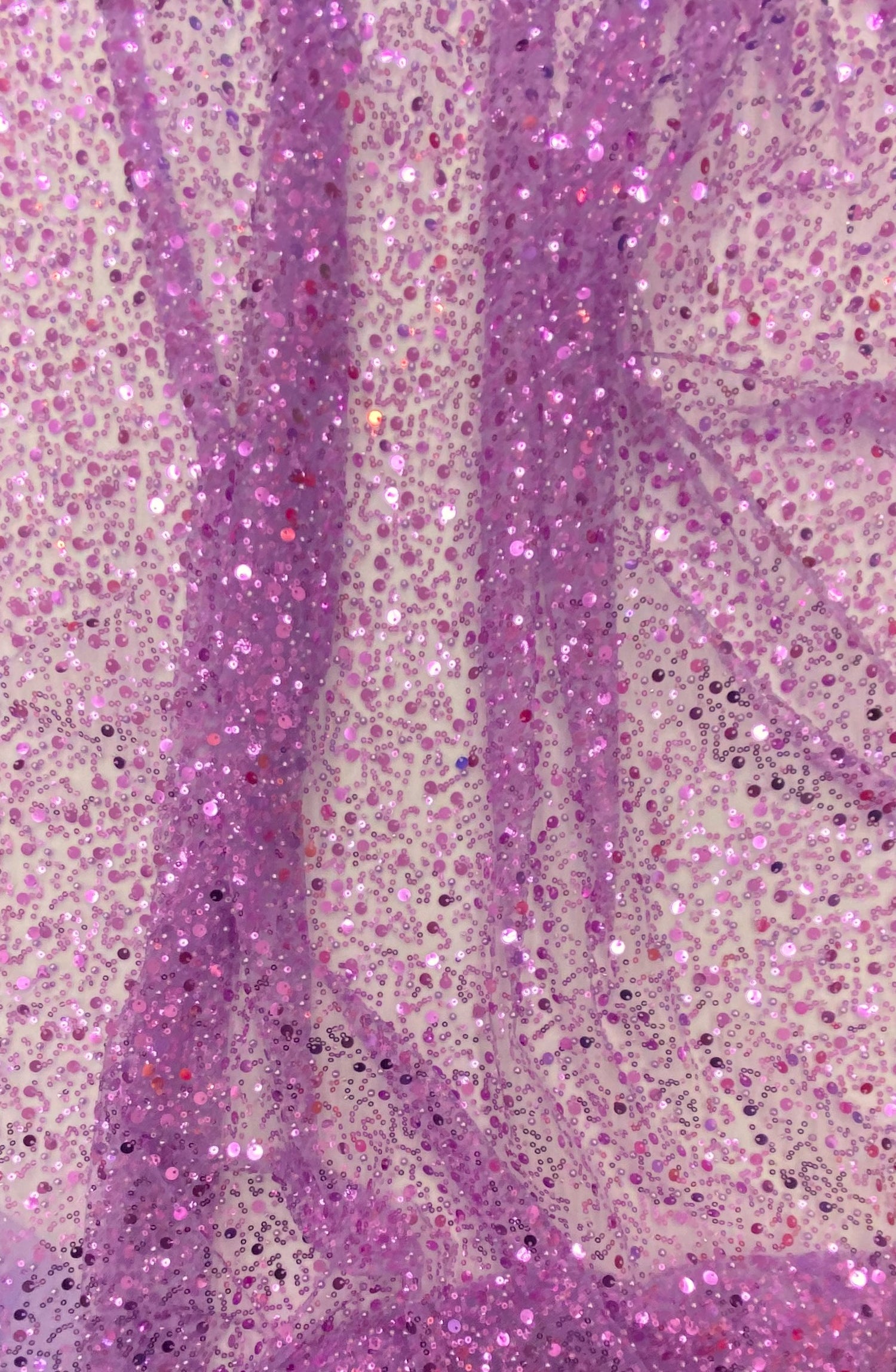 This lilac mesh lace fabric features intricate bead, pearl, and sequin detailing sewn on a soft 2 way stretch mesh. Its luxurious design and vibrant tone make it ideal for formal dresses, evening gowns, dance costumes, and cosplay projects. Crafted from 100% polyester, this lightweight fabric stretches across the width and drapes beautifully for custom garment creation. Sold by the yard in continuous length, it’s perfect for DIY projects, weddings, and decorative crafts.