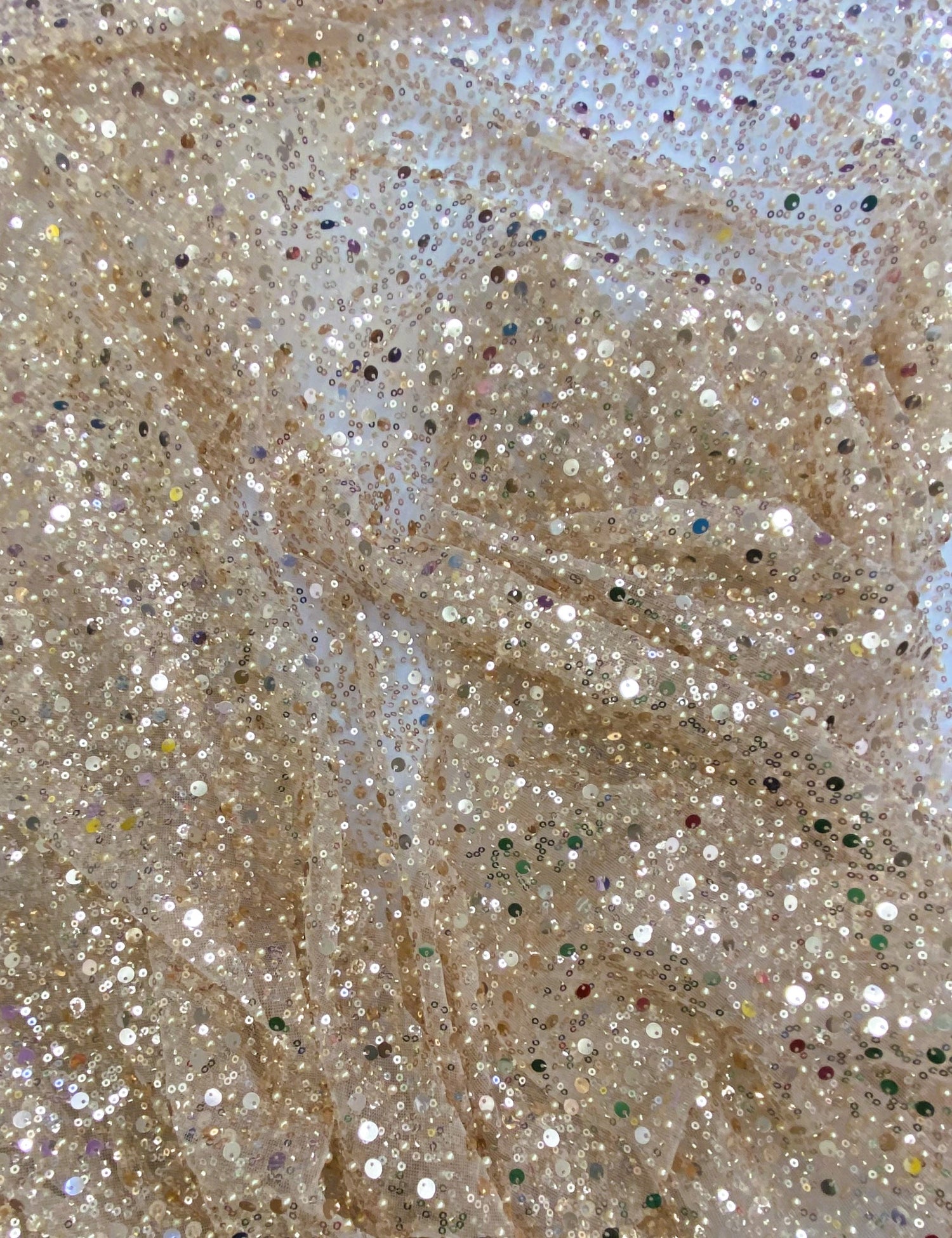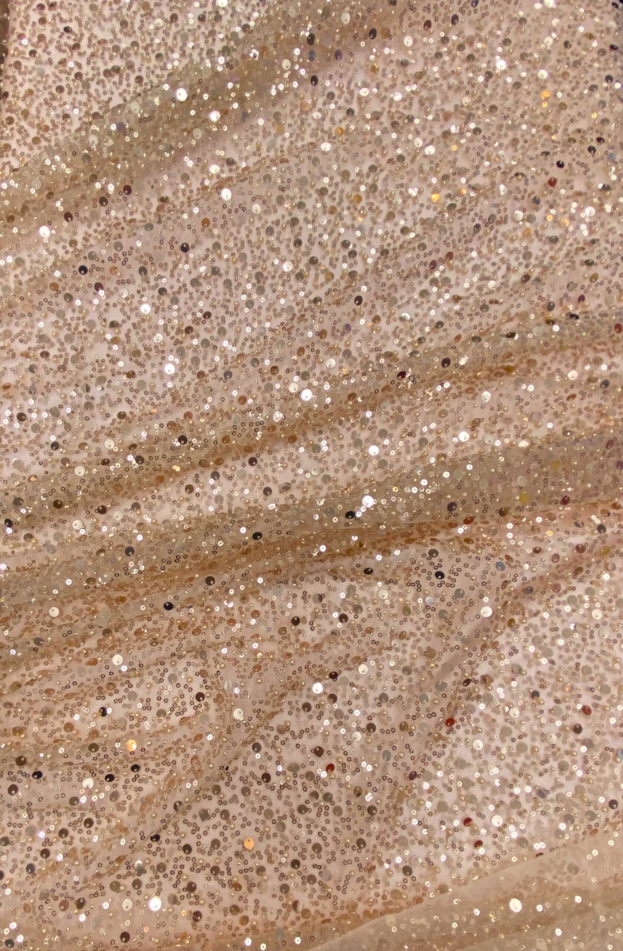 1 yard rose gold beaded sequin mesh lace fabric for dresses gowns overlays crafts 60'' Width
