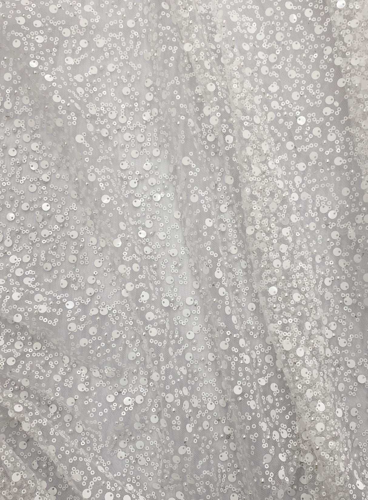 • White color mesh with elegant sequin detailing provides timeless style for bridal dresses and special occasion wear