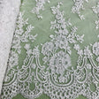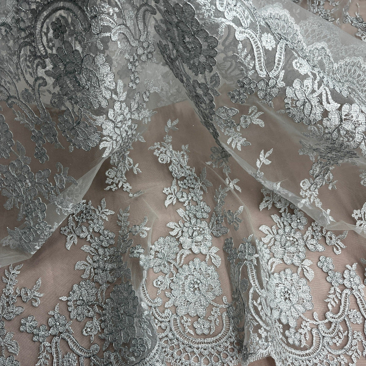 1 Yard Elegant Corded Bridal Lace Fabric on 100% Polyester Mesh, Embroidered Floral Design