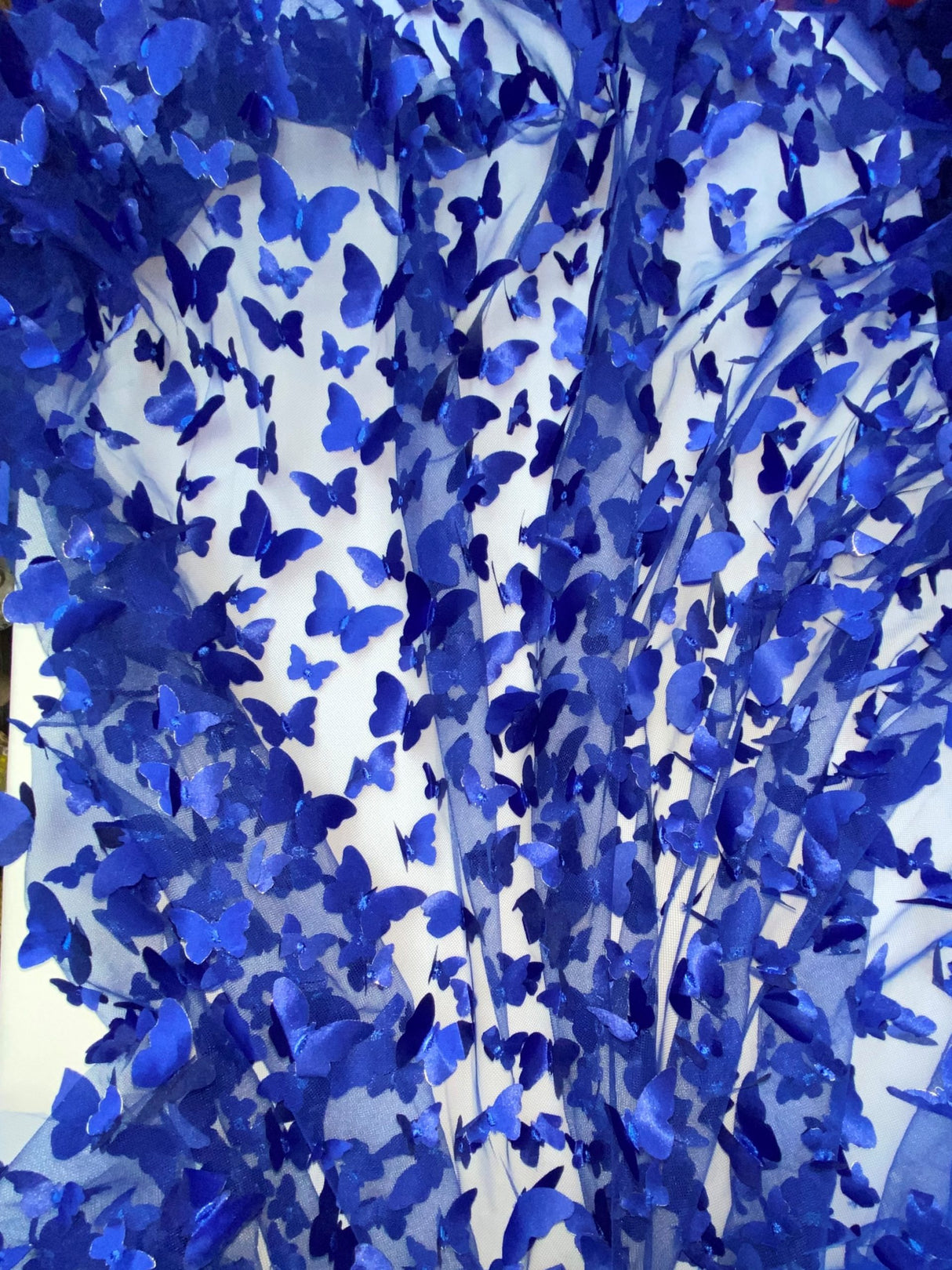 1 Yard Royal Blue 3D Butterfly Mesh Fabric with Satin Appliqués for Dresses and Décor 54 Inch Wide