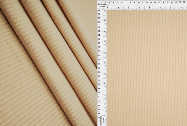 This 4x2 rib knit fabric offers a smooth solid texture, made with 89% polyester, 9% rayon, and 2% spandex for a soft, durable, and stretchy feel. At 200 GSM, it provides a medium-weight fabric ideal for structured garments like tops, dresses, and casual wear.