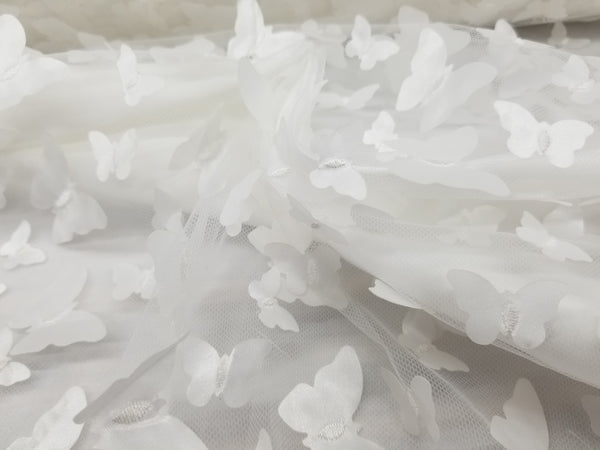 1 Yard Ivory 3D Butterfly Embroidered Mesh Tulle Fabric for Dress Decor 54 Inches Wide