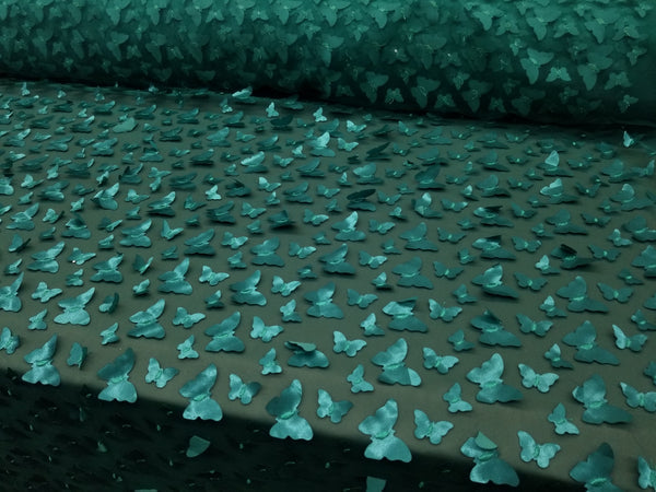 1 Yard Green 3D Butterfly Embroidered Mesh Tulle Fabric for Dresses & Decorations, 54" Wide