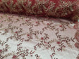 • Intricate floral embroidery on burgundy mesh fabric adds an elegant and sophisticated texture for formal and bridal wear.
