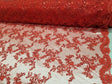1 Yard Red Metallic Flowers Sequins Mesh Lace Fabric for Tablecloths and Costumes 54 Inch Width
