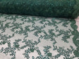 1 Yard Hunter Green Metallic Flowers Sequins Mesh Lace Fabric for Tablecloths and Costumes 54 Inch Width