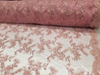 This mauve metallic flowers sequins mesh lace fabric features elegant French corded floral embroidery, creating a sophisticated and refined look. The lace includes a double scalloped edge along its 54 inch width, adding delicate decorative detail to any project. Perfect for dresses, prom gowns, bridal gowns, tablecloths, runners, Vegas show costumes, pillows, and event décor. Made from durable polyester mesh, it offers an ideal balance of beauty and functionality for fashion and creative designs.