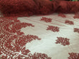 • Beautiful burgundy mesh lace with elegant French floral corded embroidery, ideal for weddings and upscale events.