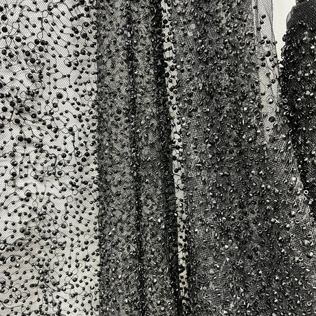 1 Yard Beaded Lace Fabric Embroidered on Polyester Net Mesh, 52" Wide Bridal & Evening Fabric