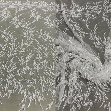 1 Yard Beaded, Corded & Sequined Bridal Lace Fabric on Polyester Net Mesh 54" Wide Couture Fabric