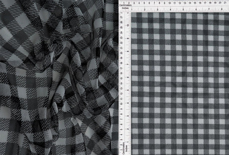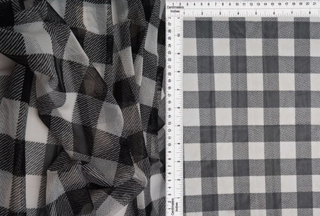 1 Yard Polyester Spandex 80 GSM Mesh Fabric Plaid Gingham Checkered Print Lightweight 54" Width