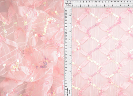 1 Yard Pink Mesh Sequins Embroidery Fabric, Polyester Spandex Blend