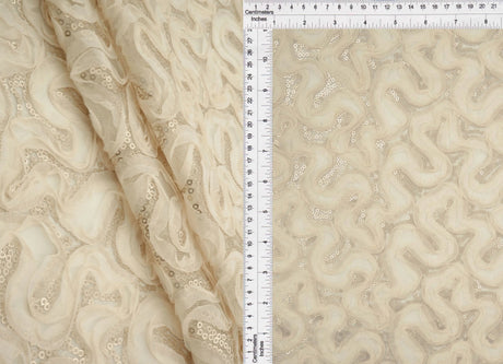 1 Yard Peach Mesh Sequins Embroidery Fabric, Polyester Spandex Blend