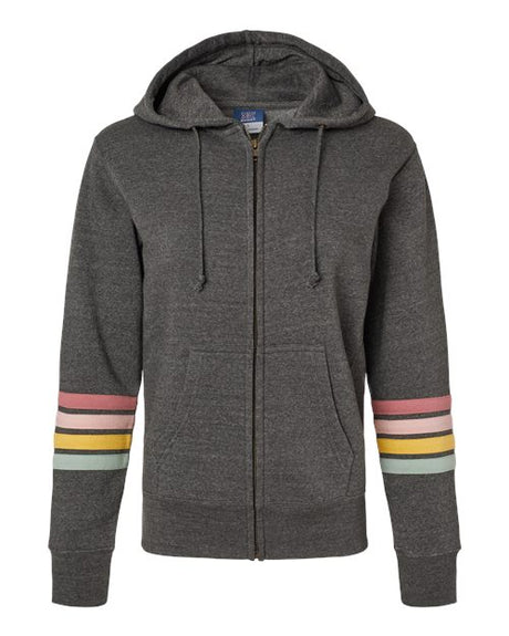 Women's Striped Sleeves Full-Zip Hooded Sweatshirt