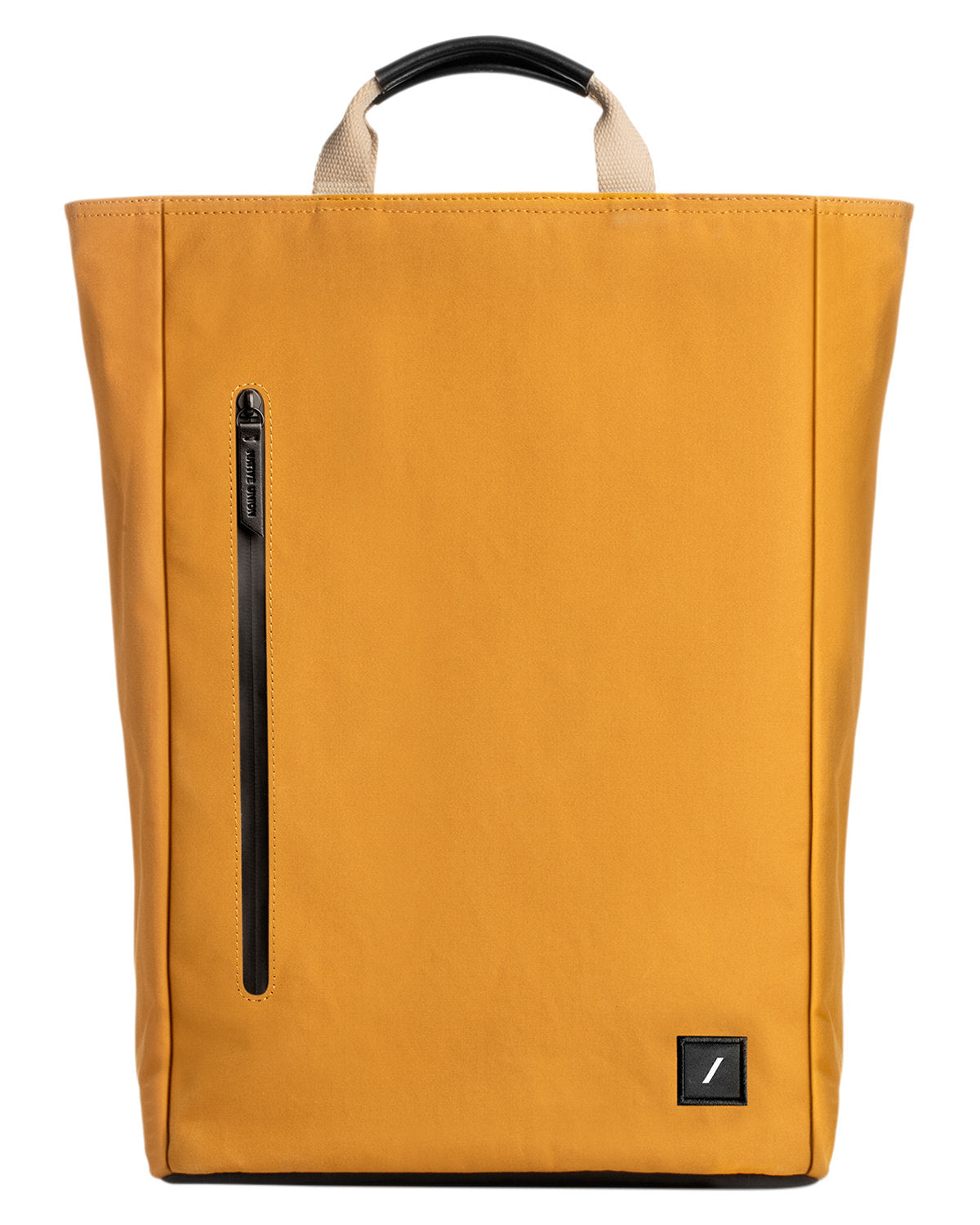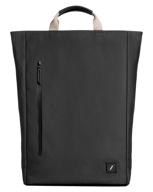 This slim and lightweight backpack adds a classic touch to your modern-day tech. Made from 100% recycled polyester (rPET) sourced from plastic bottles, with organic cotton straps and plant-based leather accents, it combines style with sustainability. The backpack features a built-in padded sleeve and tech compartments to keep your devices safe and organized. A front exterior zippered pocket provides easy access, while interior pockets include a water bottle holder, key leash, and a hidden pocket for a Chipolo or AirTag. Foam back panel and shaped padded shoulder pads ensure comfort, and a luggage strap can stow your straps for tote-style carrying. YKK zippers and a premium leather tag for customization add the finishing touches. The backpack fits laptops up to 16” and comes packaged in a Native Union dust bag.