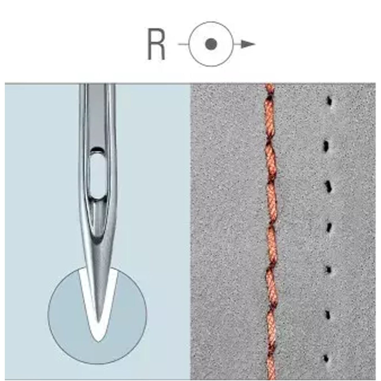 Enhance your industrial sewing projects with GROZ-BECKERT 134/DPX5/135X5 GEBEDUR Sewing Machine Needles. Featuring a regular round point (R) and a titanium nitride GEBEDUR® coating, these needles are ideal for lockstitch sewing on woven fabrics, artificial leather, coated materials, clothing leather, and vehicle seats. The high-performance coating ensures increased wear resistance, longer service life, and consistently high seam quality, even under demanding conditions. Available in sizes 65/9, 70/10, 75/11, 80/12, 90/14, 100/16, and 110/18, with 366 mm length from butt to eye and 200 mm shank diameter, these needles deliver precision stitching and professional results for garments and multi-directional applications.