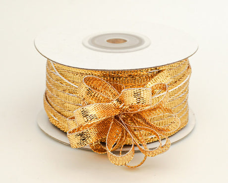 1/4"x50 yards Metallic Gold Organza Pull Bows Ribbon with Iridescent Edge