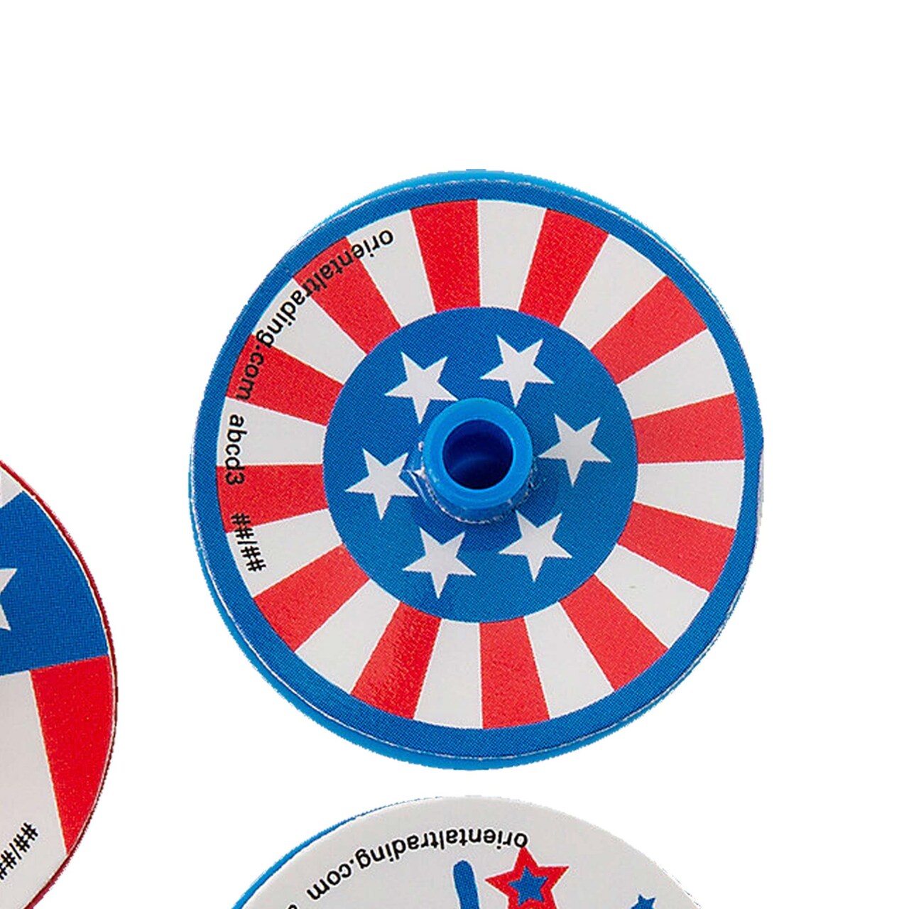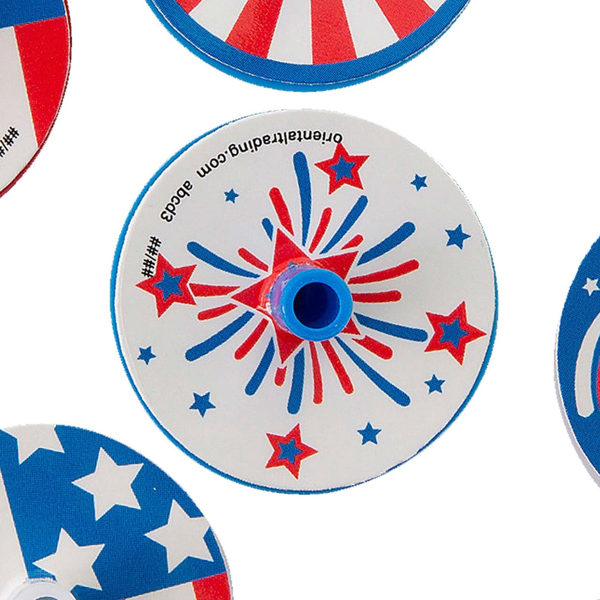 - Patriotic Colors: Vibrant red, white, and blue spin tops