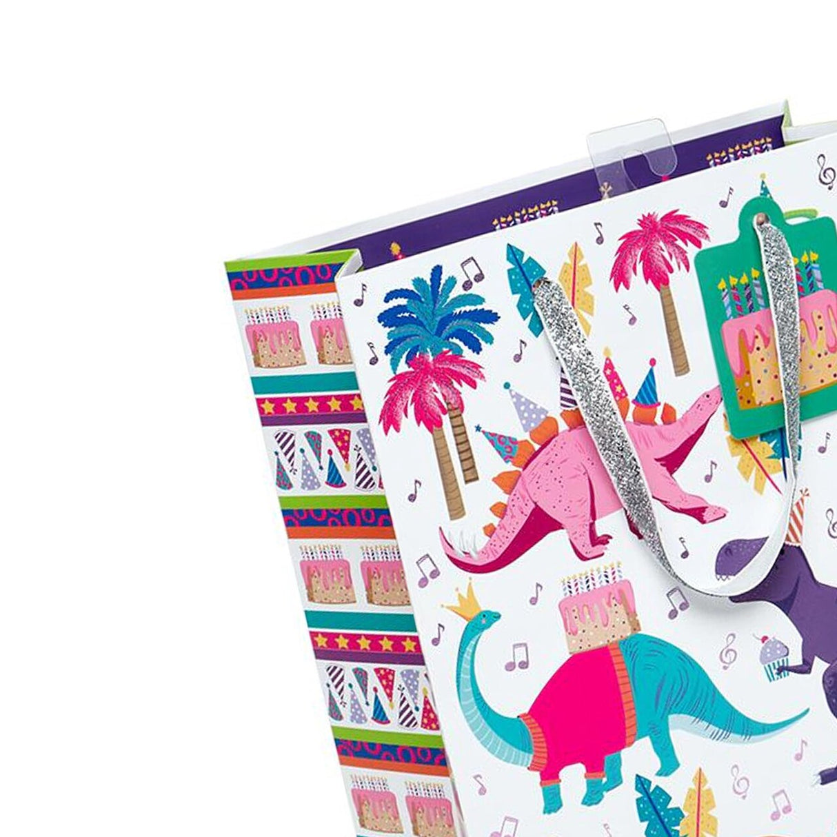 - Stylish Handles: Coordinating Handles, Including Metallic Ribbon for Dino Party Designs, Add a Premium Touch.
