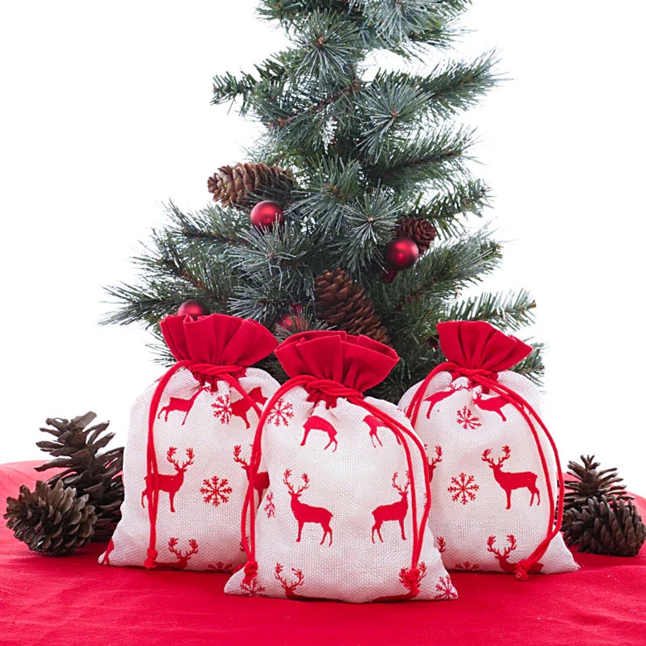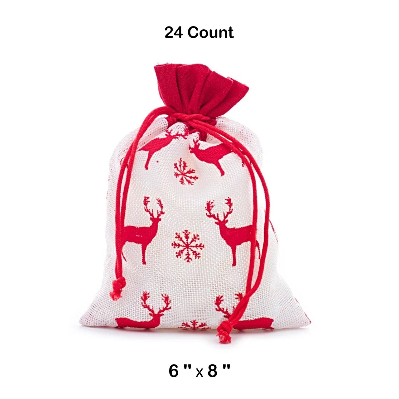 The White and Red Christmas Deer Fabric Bag adds rustic charm to your holiday packaging.