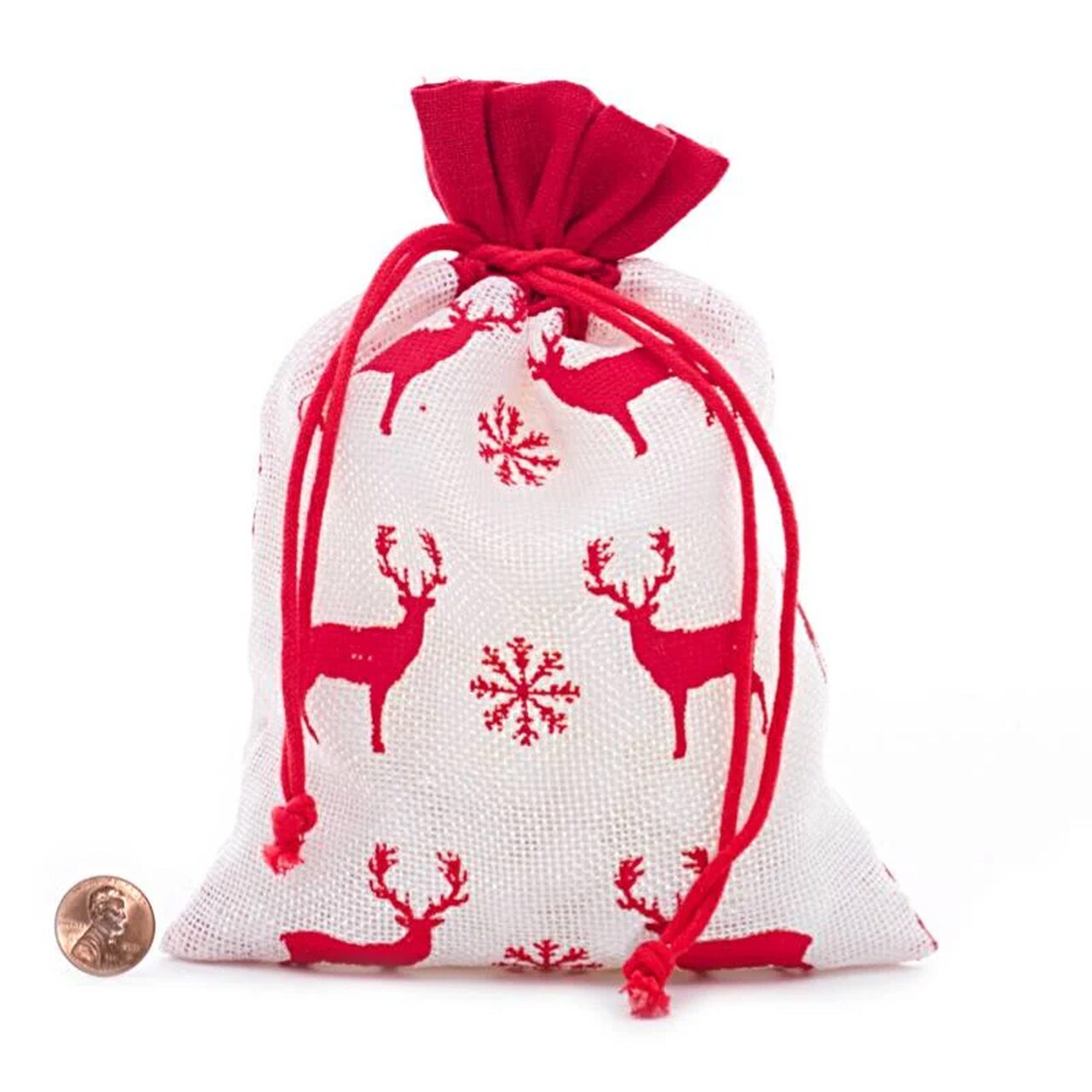 White & Red Christmas Deer Fabric Bag 6” x 8” Holiday Packaging