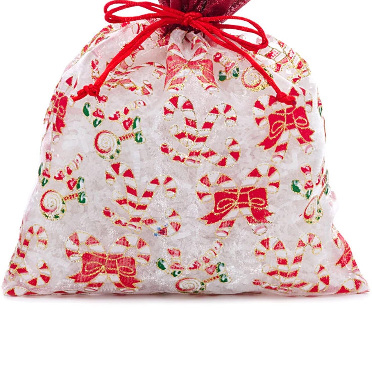 Candy Canes Christmas Bag with Red Ribbon 8” x 10”