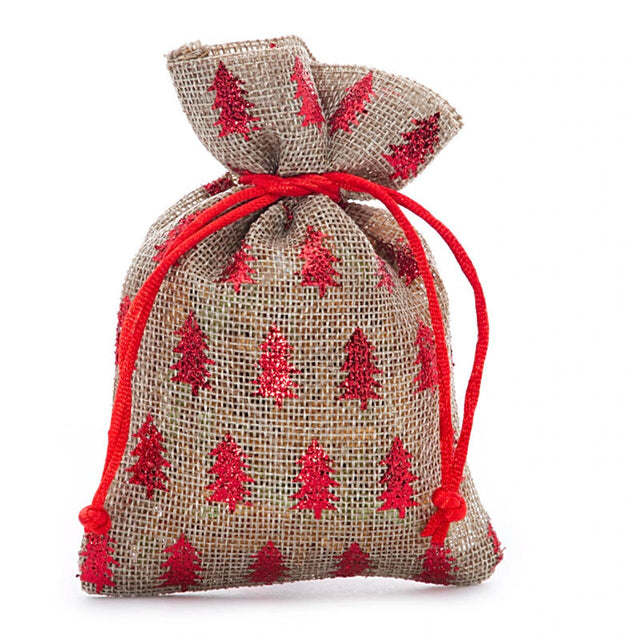 Metallic Tree Fabric Bags 4” x 6” for Holiday Gifts - NATURAL W/ RED / 12 counts is backordered and will ship as soon as it is back in stock.