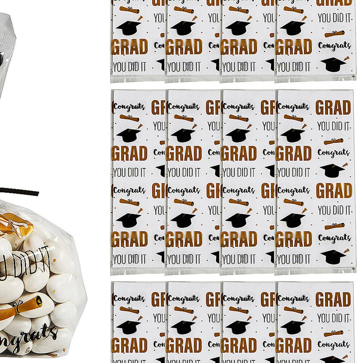 Wrap up sweet memories with these Graduation Cellophane Favor Bags. Measuring 5" x 11.5", each bag comes with a twist tie, making it easy to fill with candy, cookies, or small gifts.