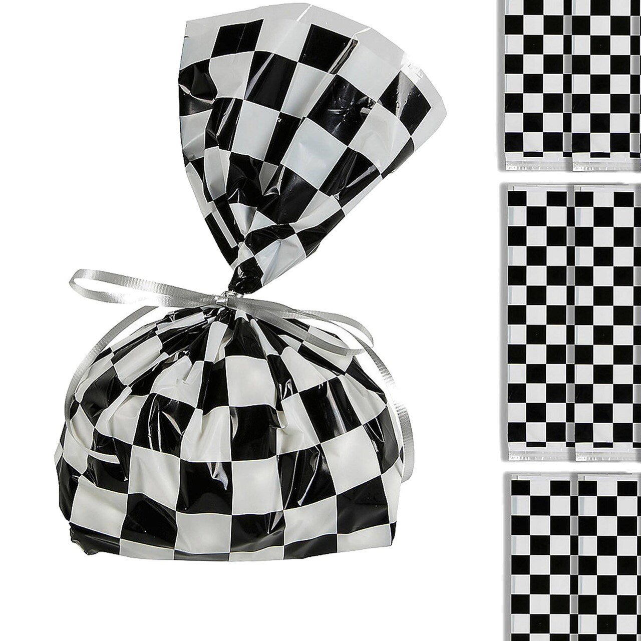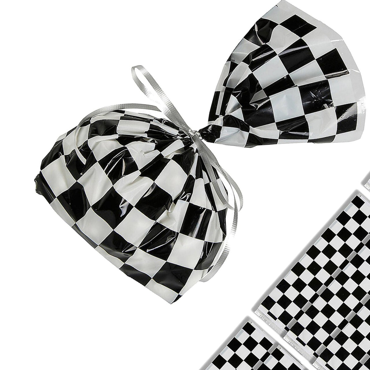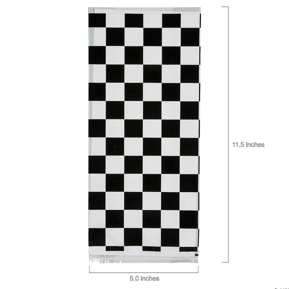5" x 11 1/2" Black and White Checkered Cellophane Bags - 12 Pc.