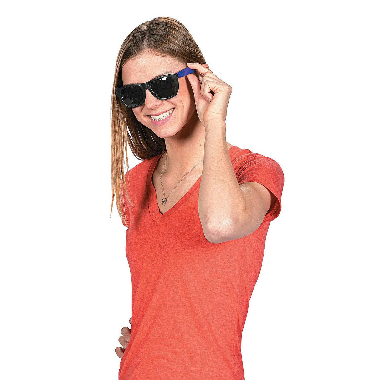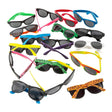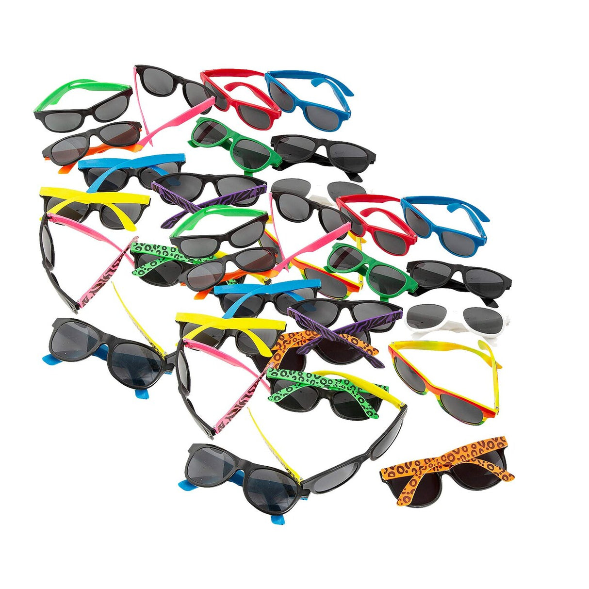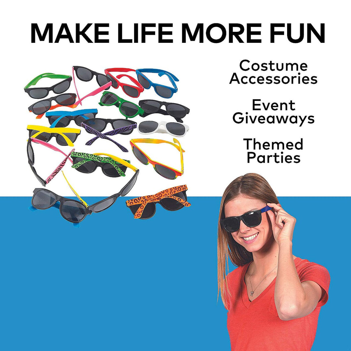 This bulk assortment of 48 adult-sized sunglasses features a fun mix of solid-colored and patterned designs. Each pair measures 5" x 5", offering both comfort and flair for parties, giveaways, or casual wear. Whether you’re outfitting a crowd or stocking up on event gear, this set has you covered. Total: 48 sunglasses.