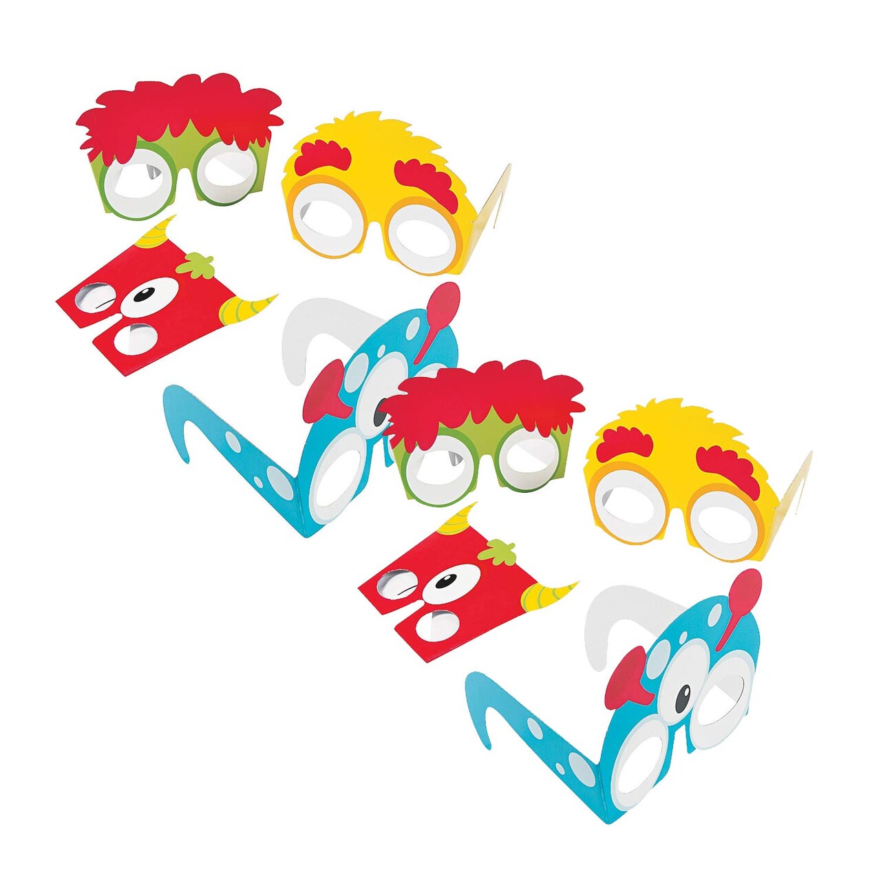 Set of 12 Glasses: Includes 12 pairs of monster-themed glasses.