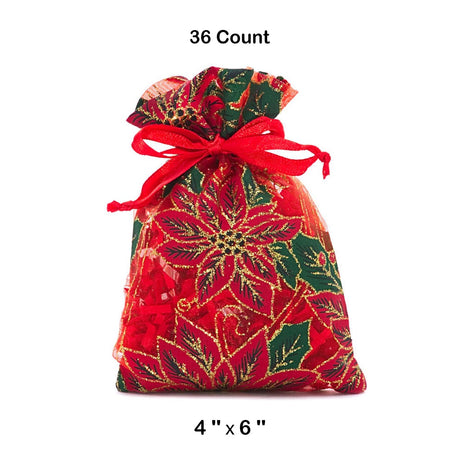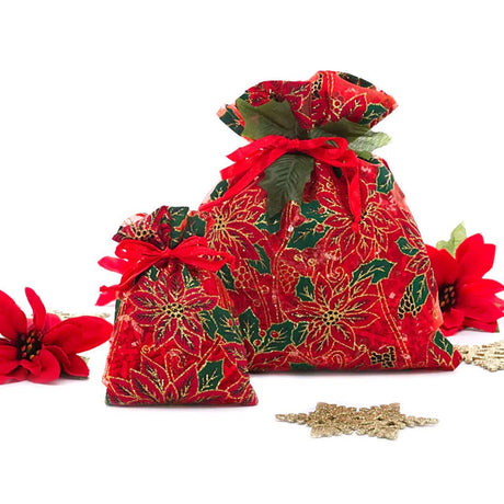 Red Poinsettias Sheer Fabric Bag 4” x 6” for Holiday Gifts