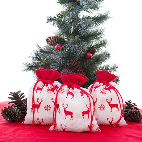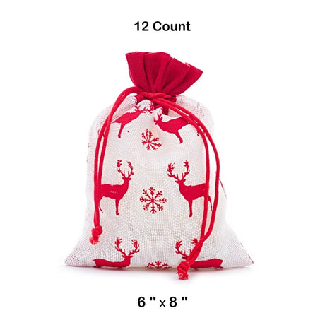 White & Red Christmas Deer Fabric Bag 6” x 8” Holiday Packaging