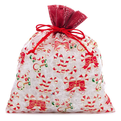 Candy Canes Christmas Bag with Red Ribbon 8” x 10”