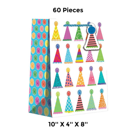 Vibrant Patterned Gift Bags 10" x 4" x 8"