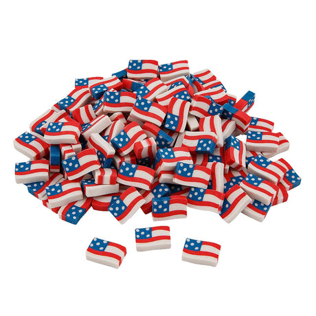 3/4" x 1/2" Bulk 144 Pc. Mini Patriotic USA Flag Rubber Erasers