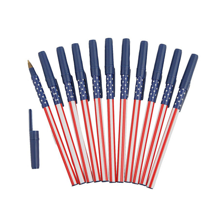 5 3/4" Patriotic USA Flag Stars & Stripes Stick Pens 12 Pc.