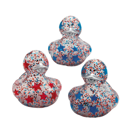 2" Patriotic Red, White & Blue Glitter Rubber Ducks 12 Pc.