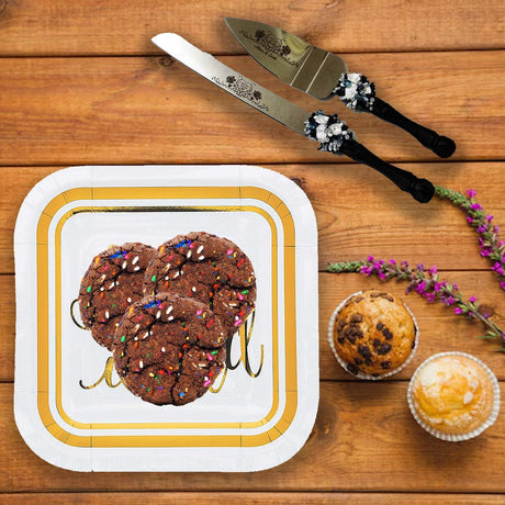 8 Ct. Oh Baby Gold Hello World Square Dessert Plates 7" Baby Shower Paper Plates