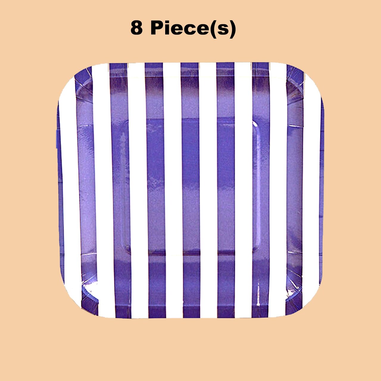 8 Ct. Purple Striped Square Paper Dessert Plates Bold Party Tableware 7 1/4"