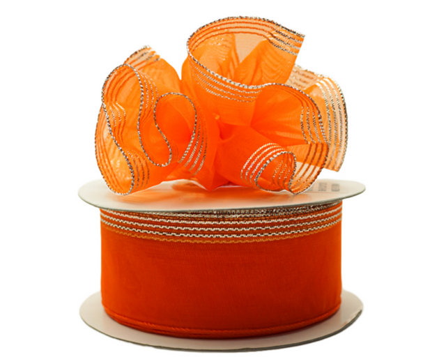 A vibrant orange and silver organza pull bow ribbon, offering a bold and festive touch to your gifts and decorations.