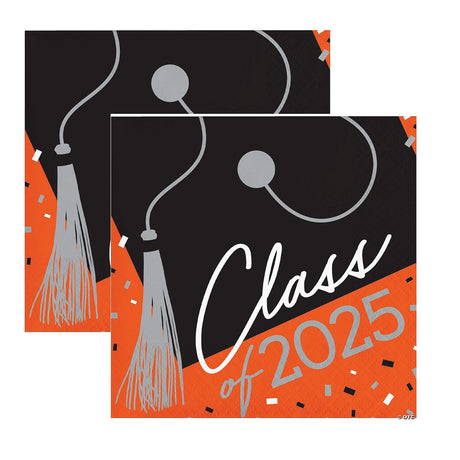 Class of 2025 Orange Graduation Beverage Napkins – 108 Count | School Spirit Collection