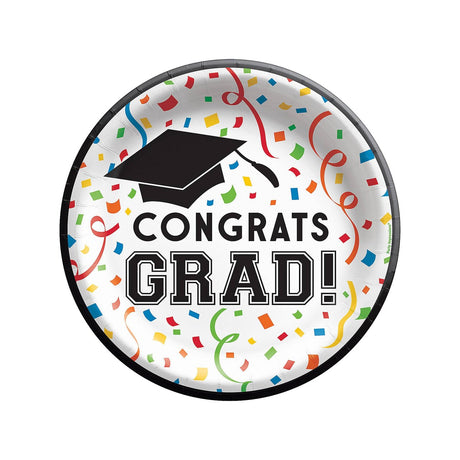 8.5" Congrats Grad Round Paper Dinner Plates – 8ct
