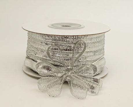 1/4"x50 yards Metallic Silver Organza Pull Bows Ribbon with Iridescent Edge