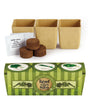 - Set includes three flower pots, three compressed soil wafers, and three seed packets (parsley, basil, and chive)