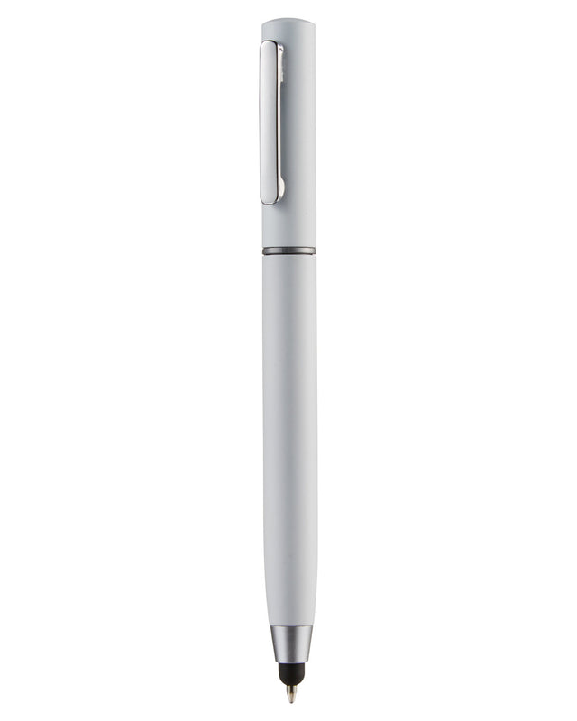 This ABS plastic cleaning tool is designed to protect your TWS earbuds. It features a metal cleaning tip hidden under the cap for clearing debris from acoustic outlets and charging ports. Use the side brush to remove loose debris, and pull out the cleaning tip to expose a long, flocked sponge for deeper cleaning. It also functions as a twist pen with black ink and a black silicone stylus. Product size: 5.7" h.