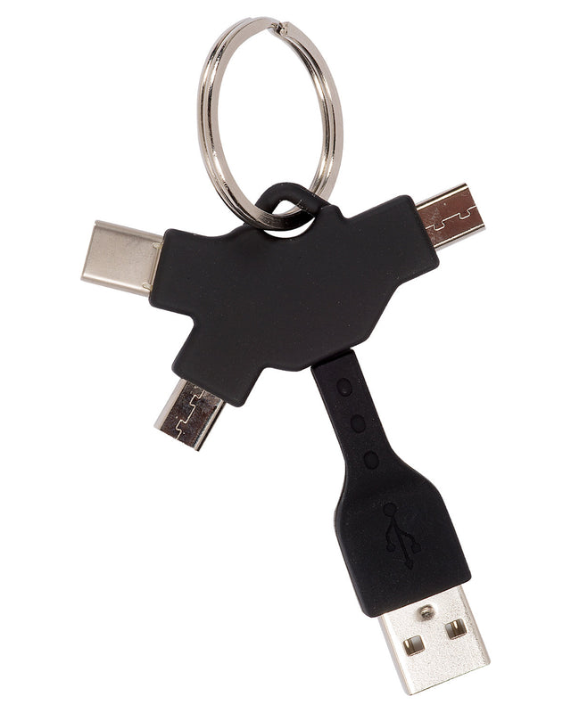 Multi-Cable Keychain Charger with USB, Micro USB, and USB-C Connectors