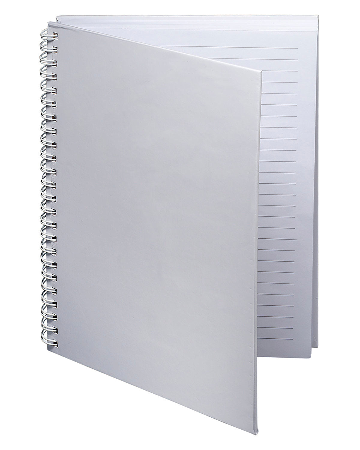 Cardboard; Durable rigid cardboard cover with a coated wire binding;