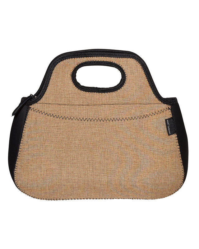 Neoprene; Lunch tote accented with burlap fabric;